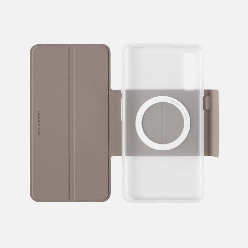 The Magnetic 2-in-1 Protective Case for Palma 2 Pro combines a slim TPU shell with a detachable PU flip cover. The foldable flip cover transforms into a stable landscape kickstand for hands-free reading. Available in Midnight Blue, Sand, and Blue Iris.